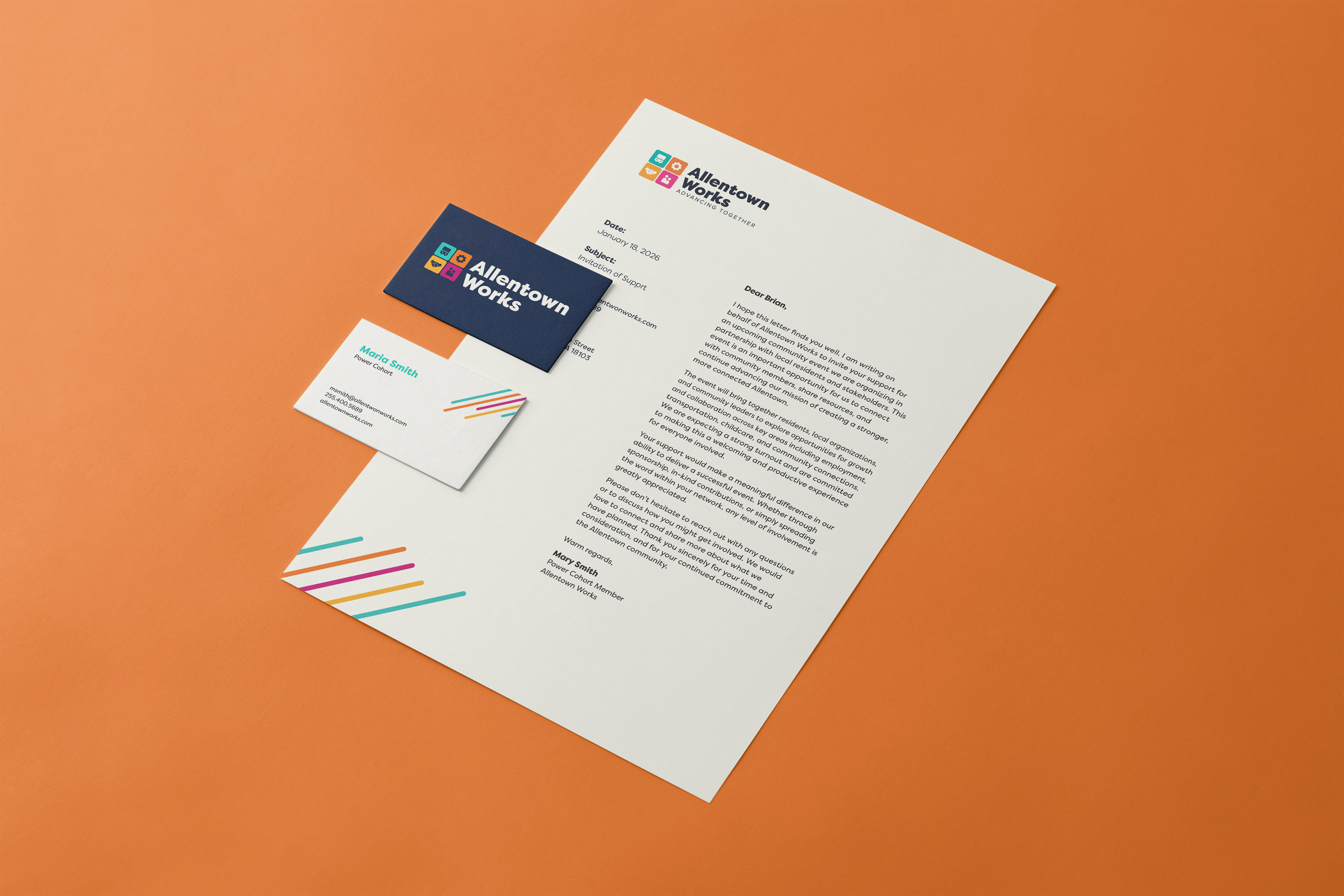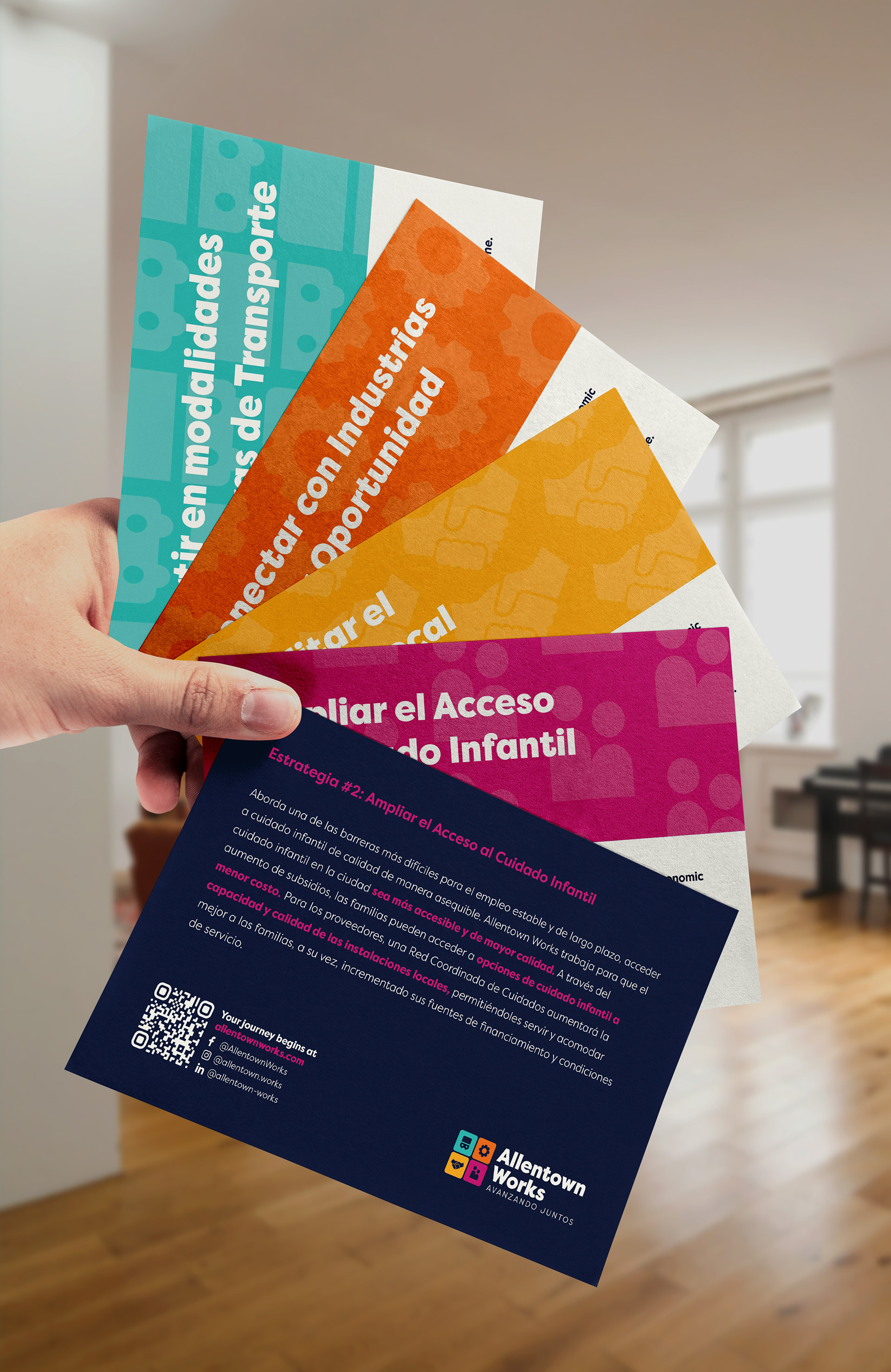 Working alongside the City of Allentown, the Allentown Economic Development Corporation, and community residents, I developed a dynamic visual identity designed to meet people where they are. The brand needed to feel energetic and approachable, credible enough to represent a city-backed initiative but warm enough to connect with the everyday residents it was built to serve. With a significant Spanish-speaking population in Allentown's priority neighborhoods, all materials were designed to work seamlessly in both English and Spanish, ensuring the program could reach as much of its audience as possible.