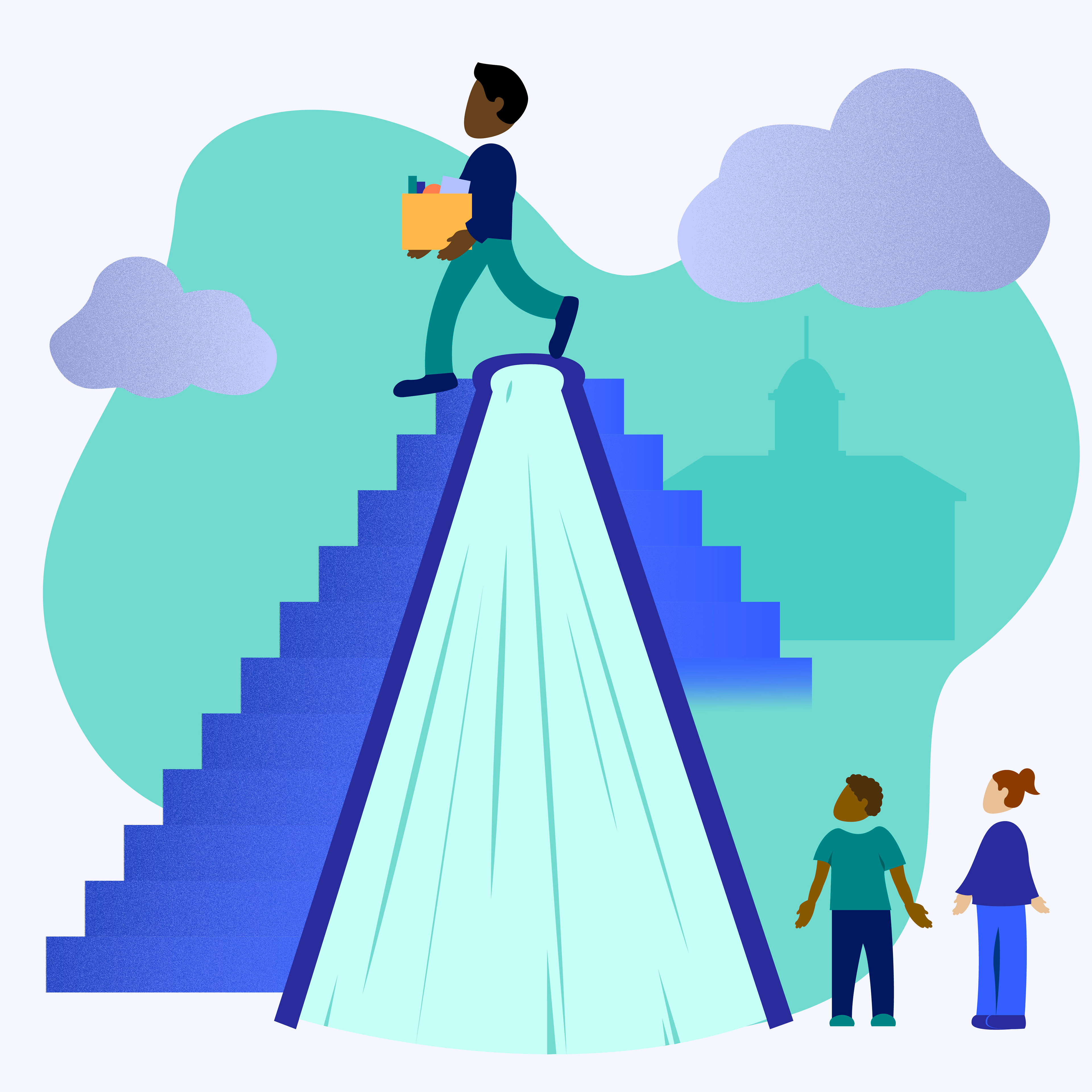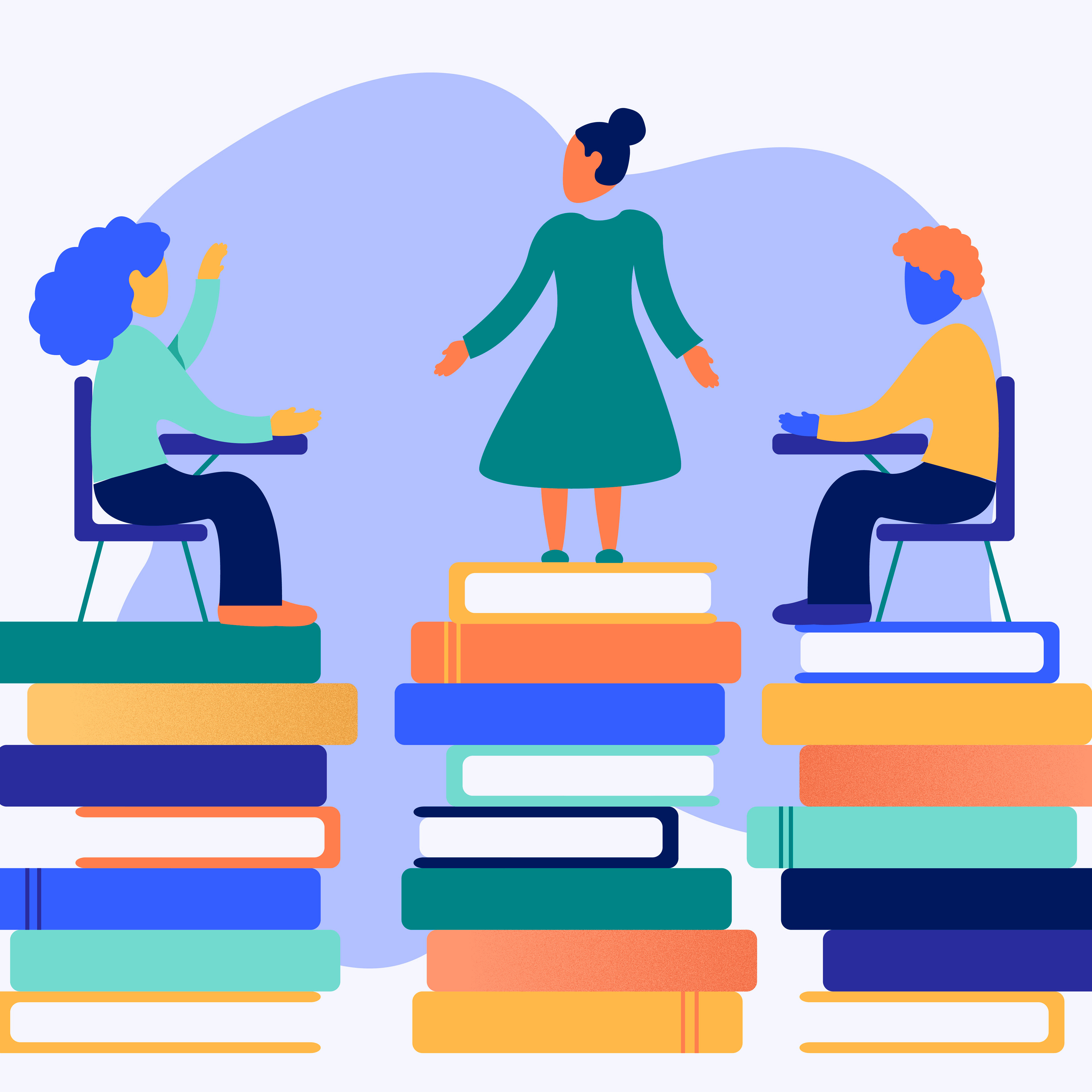 Teacher mobility is the movement of teachers between schools or the decision to leave the teaching profession. To raise awareness around teacher mobility, these illustrations were created for RFA’s social media and website. The left illustration depicts a teacher leaving a school, and the students are still behind, wondering what happens next. The right shows an educator teaching a lesson to their students.